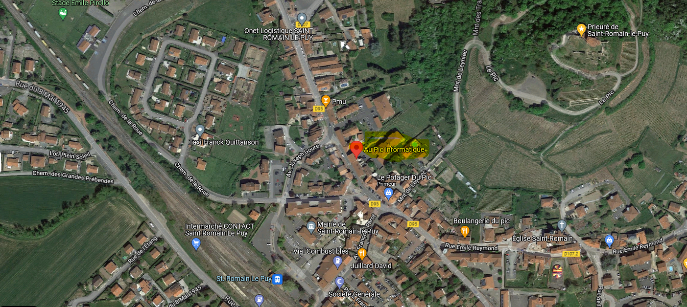 Voici toutes les informations sur le Service de réparation de téléphones Au Pic Informatique qui ce trouve au 6 Rue Léon Portier, 42610 Saint-Romain-le-Puy (42). Sur cette fiche vous trouverez les photos, l'adresse, les horaires d'ouverture, le numero de téléphone et les avis clients.Vous pouvez églement rédiger un avis si vous le souhaitez en bas de page.