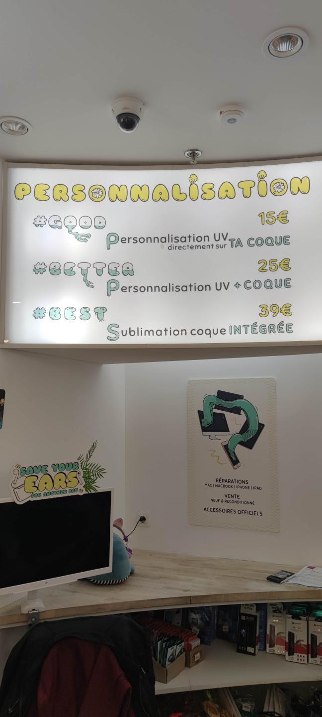 Boutique original concernant l'apparence qui change des autres boutiques du secteur ! C'est assez novateur concernant le design et surtout au niveau des choix de coques où tout les modèles de téléphones y sont pratiquement présent ! Large gamme de produits avec une possibilité de personnaliser son produit ! La boutique propose également de réparer ses téléphones ou autre. Personnellement je conseil la boutique de part son large choix de produit qui permet à toute personne de trouver son bonheur ici ! Concernant les réparations je sais où aller également.