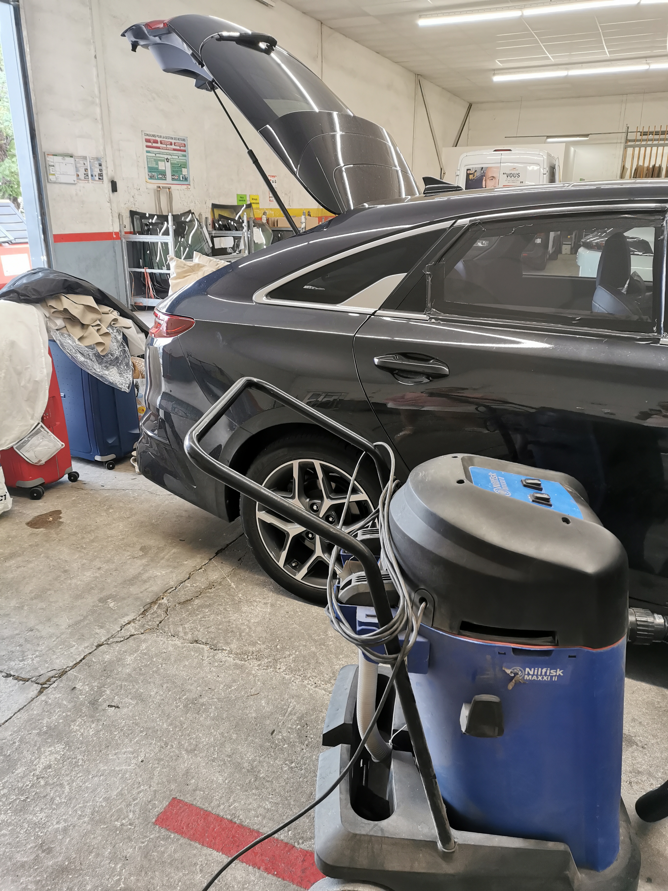 Mise en place d'une lunette arrière provisoire en plexi. Très pro. Jetais attendu , impeccable. Rien à dire nickel.
