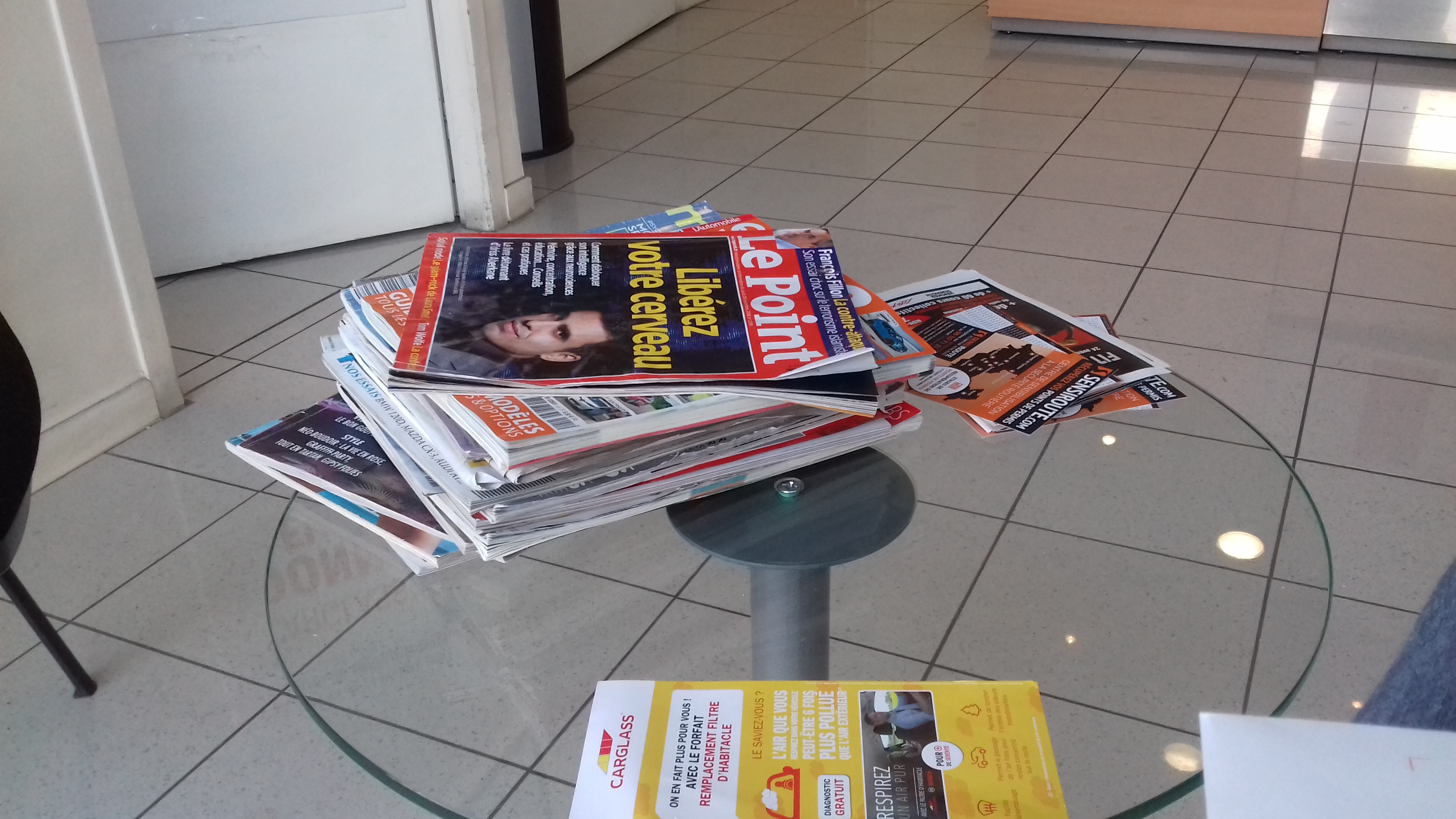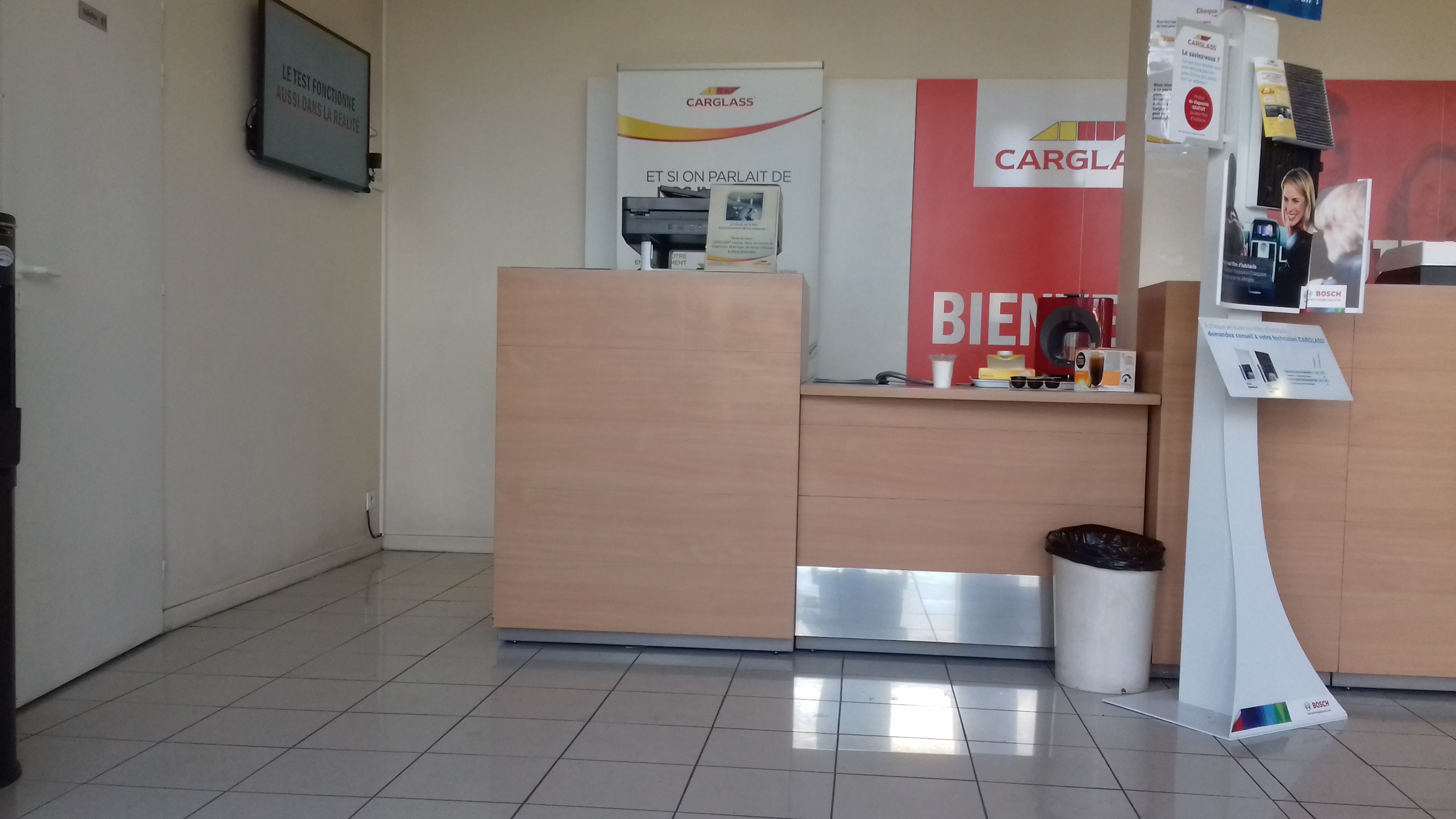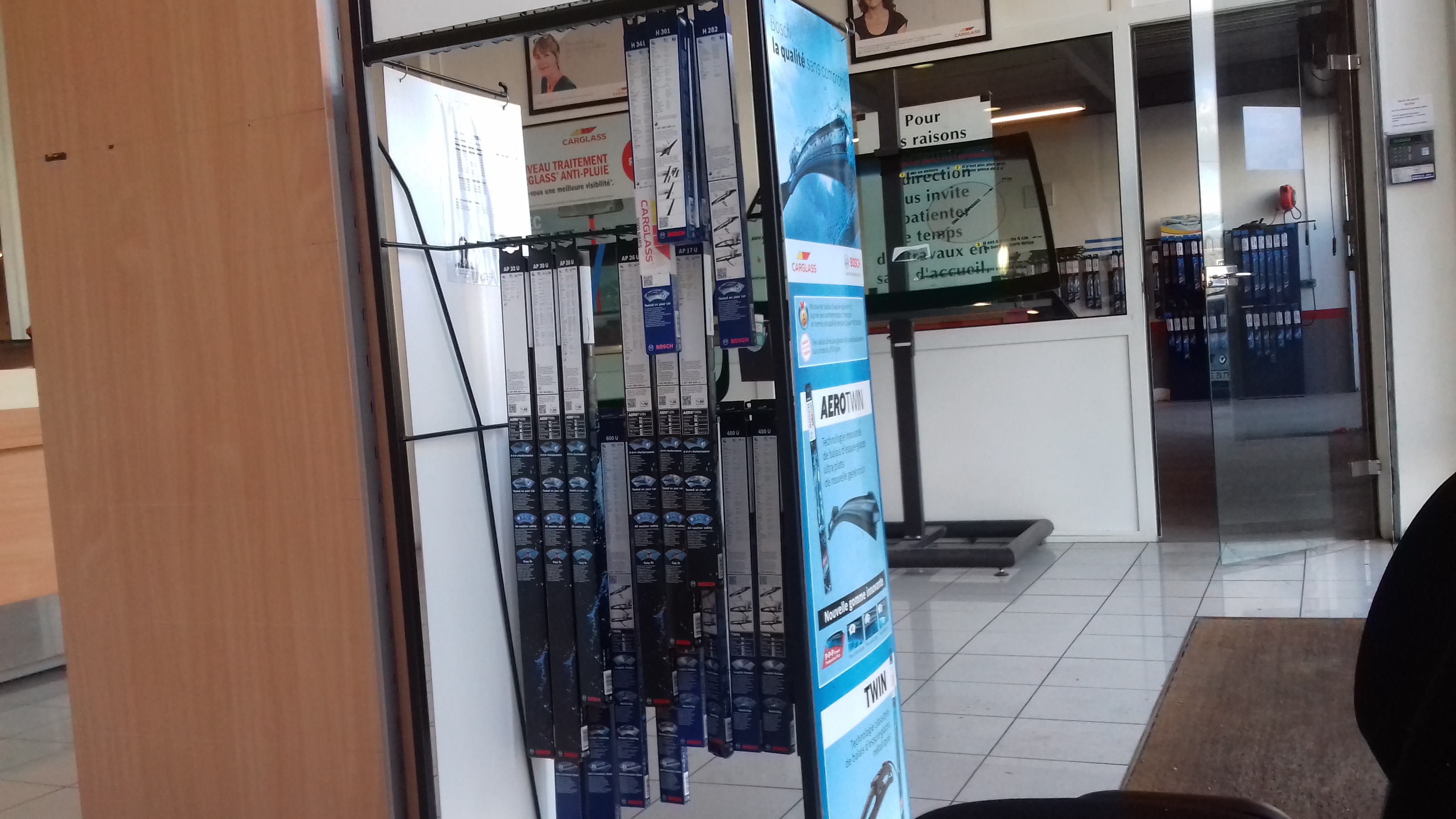 Les ☺ : Un bon acceuil, une bonne équipe de professionnels. Timing respecté. Bravo ☺. A l'écoute client. Bons conseils. Multiples services à disposition ; remplacement pare brise, réparation pare brise, traitement du pare brise anti-pluie, remplacement des balais essuie glace (Boch Aerotwin). Rapide et efficace. Ils vous nettoient le pare brise et passent un coup d'aspirateur une fois la prestation terminée 😊. Cool 😆. Les 😵 : Pas grand chose, mais juste pour s'améliorer ; Propreté salle d'attente à revoir (Taches, poussière...) et manqué le petit café non proposé pendant l'attente, pas de machine à café ?? Dommage 😢...