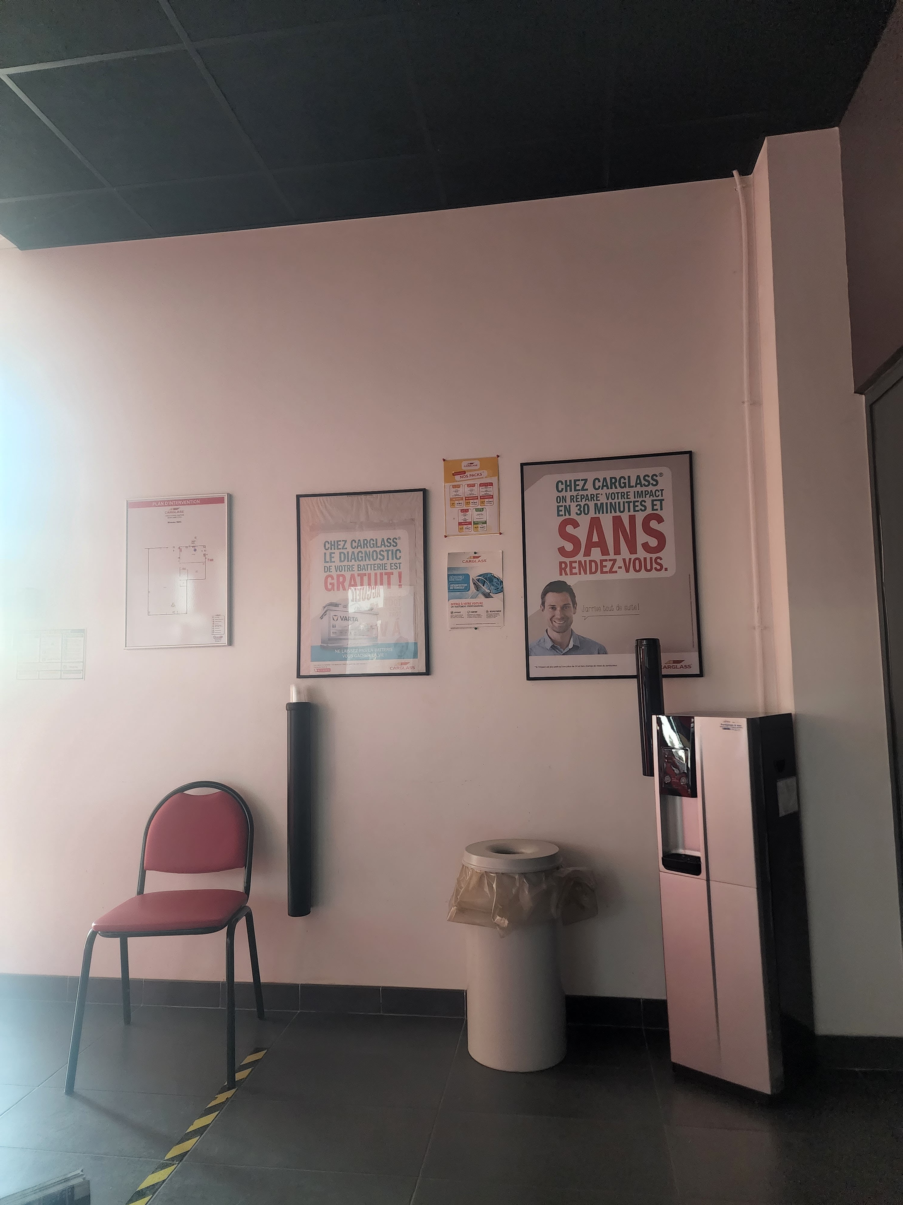 Long, trop long... pour un changement de vitre... Pas de salle d'attente.