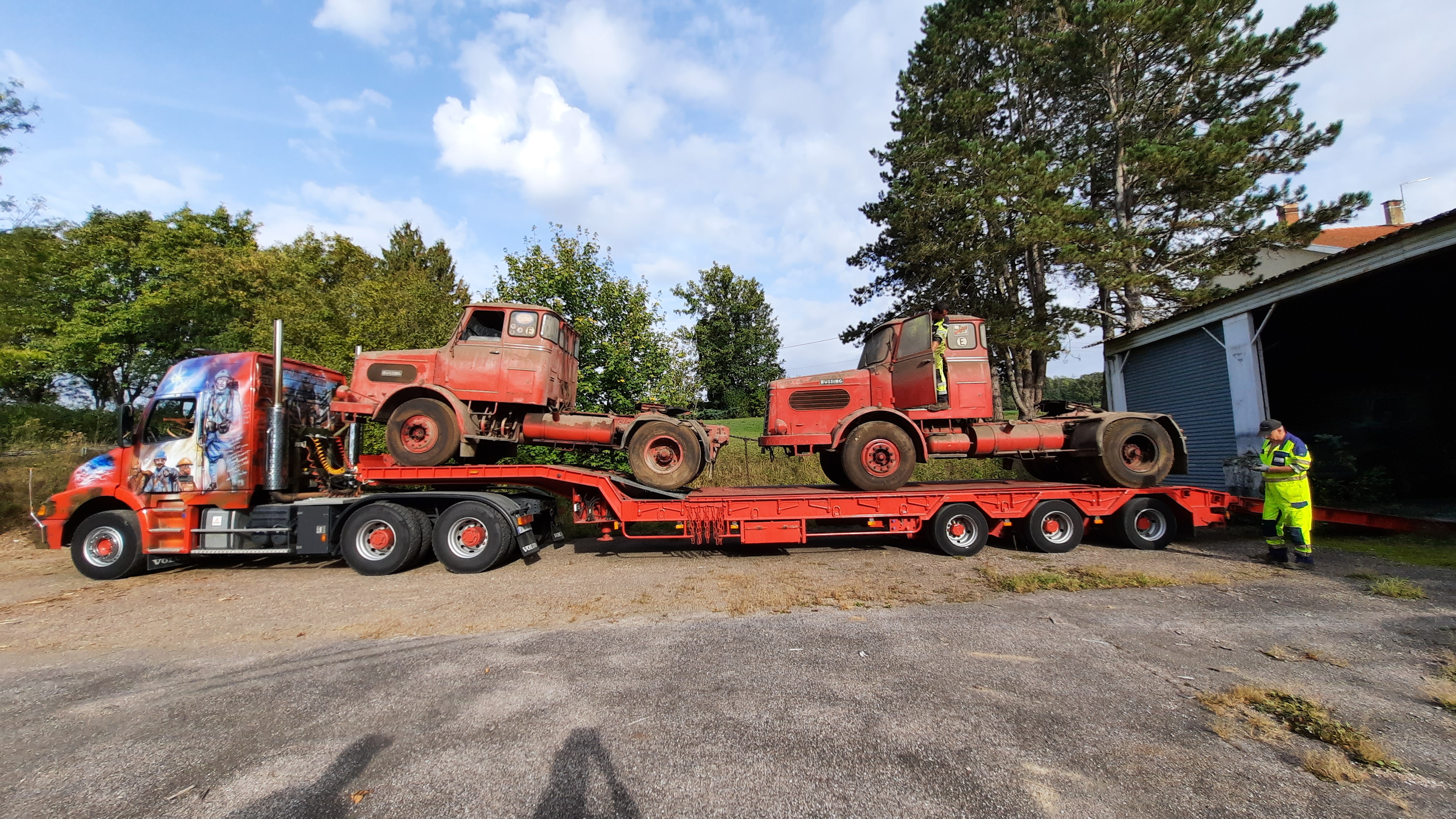 Il y a des véhicules très intéressants dans la cour