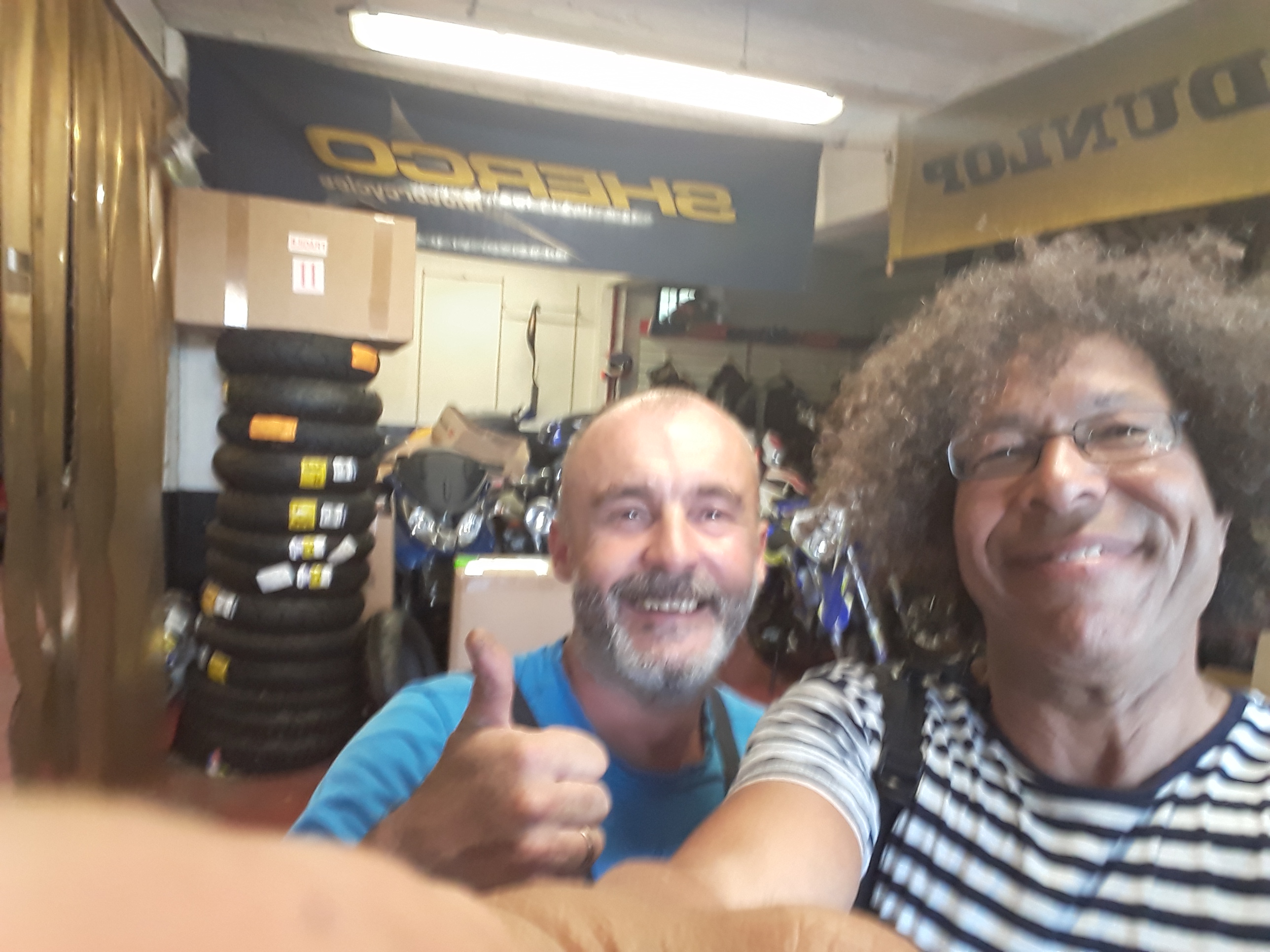 En road-trip dans la région, crevaison un week-end... Seul garage ouvert le lundi matin, ouvre à9h, téléphone à 9h10, explique le problème : passe je pense pouvoir te dépanner dans la journée. Je laisse la moto à midi, super contact. Je vais déjeuner, ballade digestive, 4h00 discussion autour de la moto. Changement de la chambre à air, vingt minutes chrono. Travail nickel, un atelier comme j'aime, à l'ancienne. Je veux même à la maison. Merci encore pour ce service irréprochable.