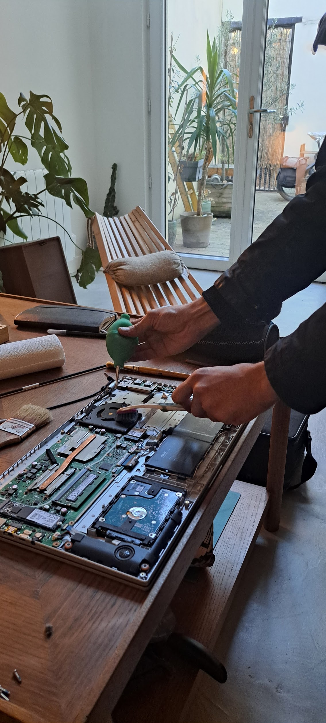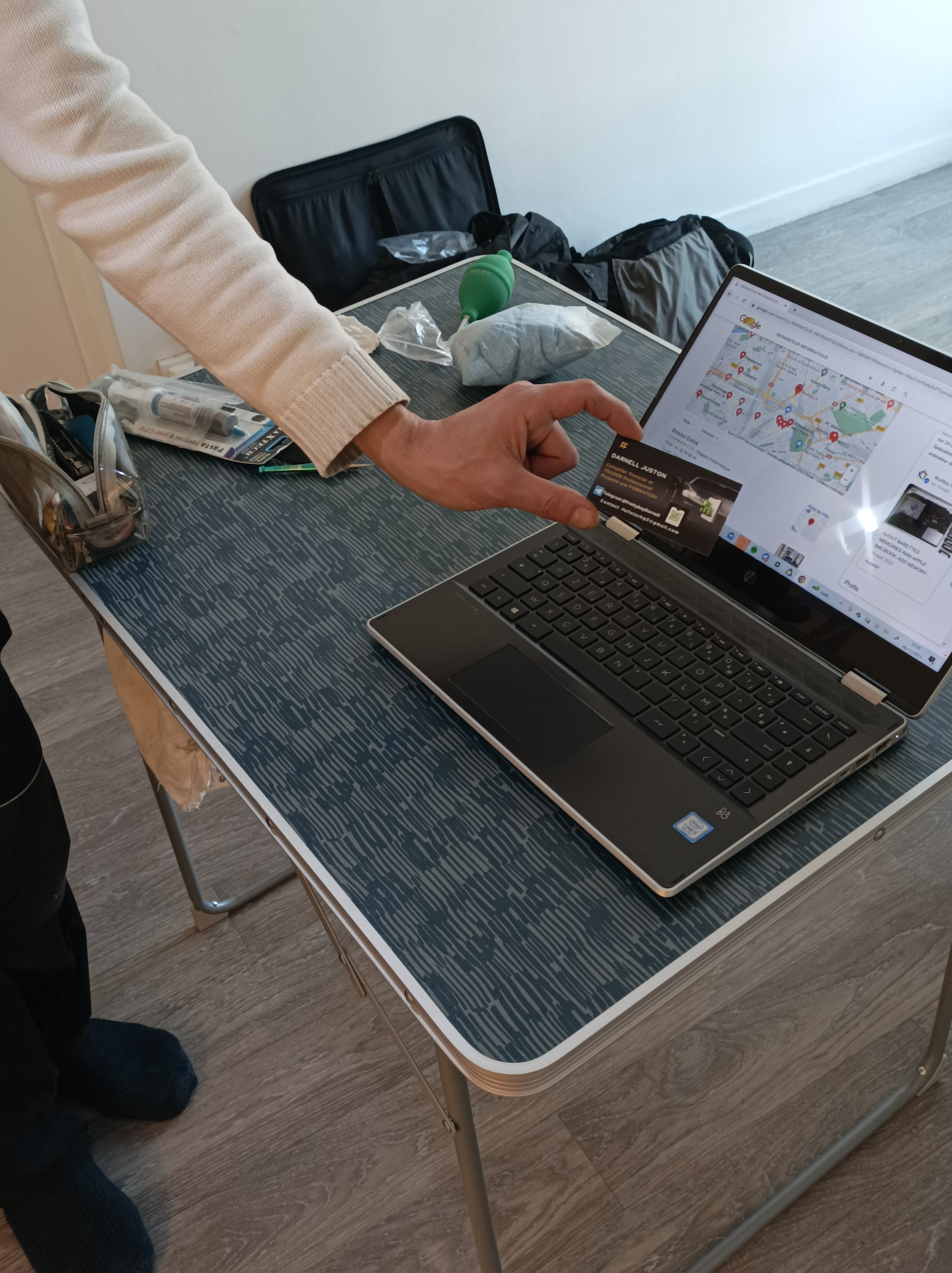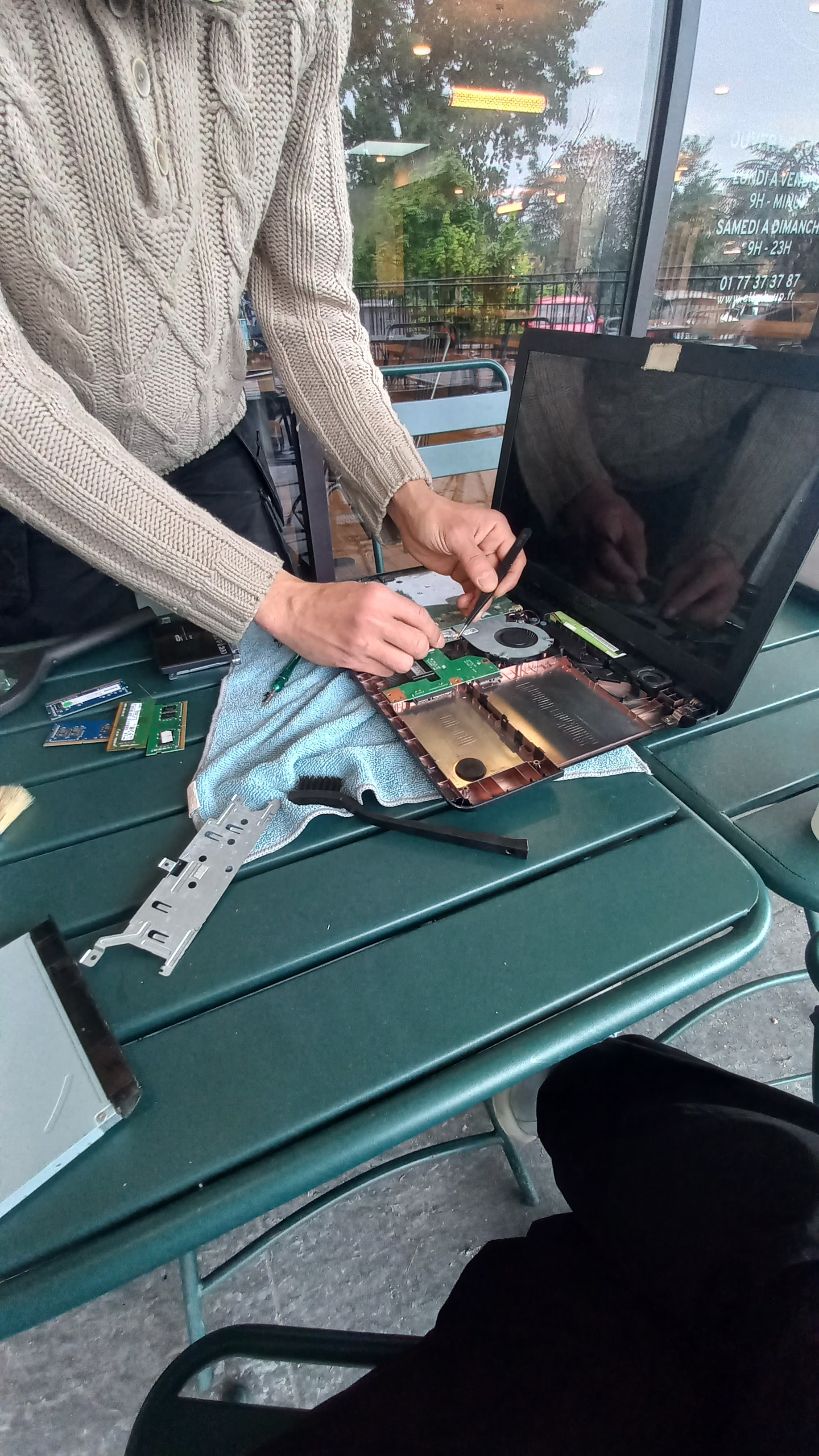 Nordine est patient (car je ramenais un engin bien lent !!). Bon moment d'échange et formation ludique sur les bases d'entretien d'un PC. Ça sert à rien de racheter du neuf, il faut en prendre en soin !