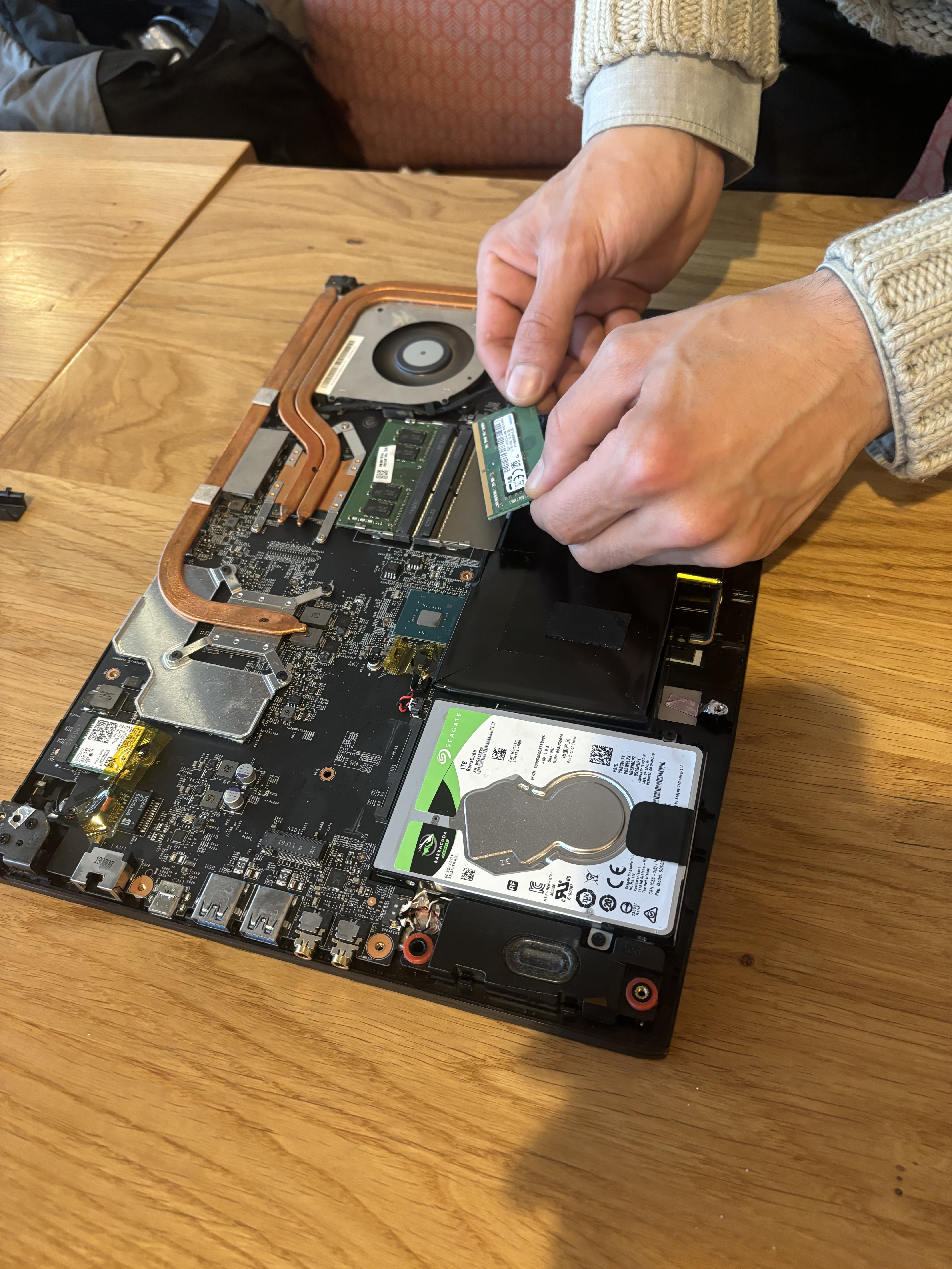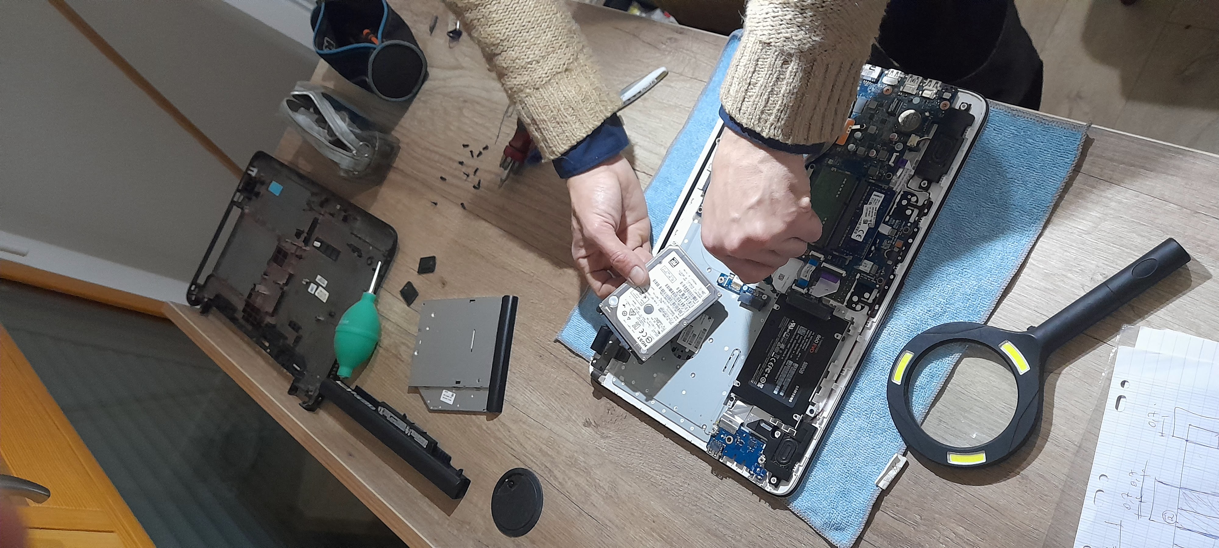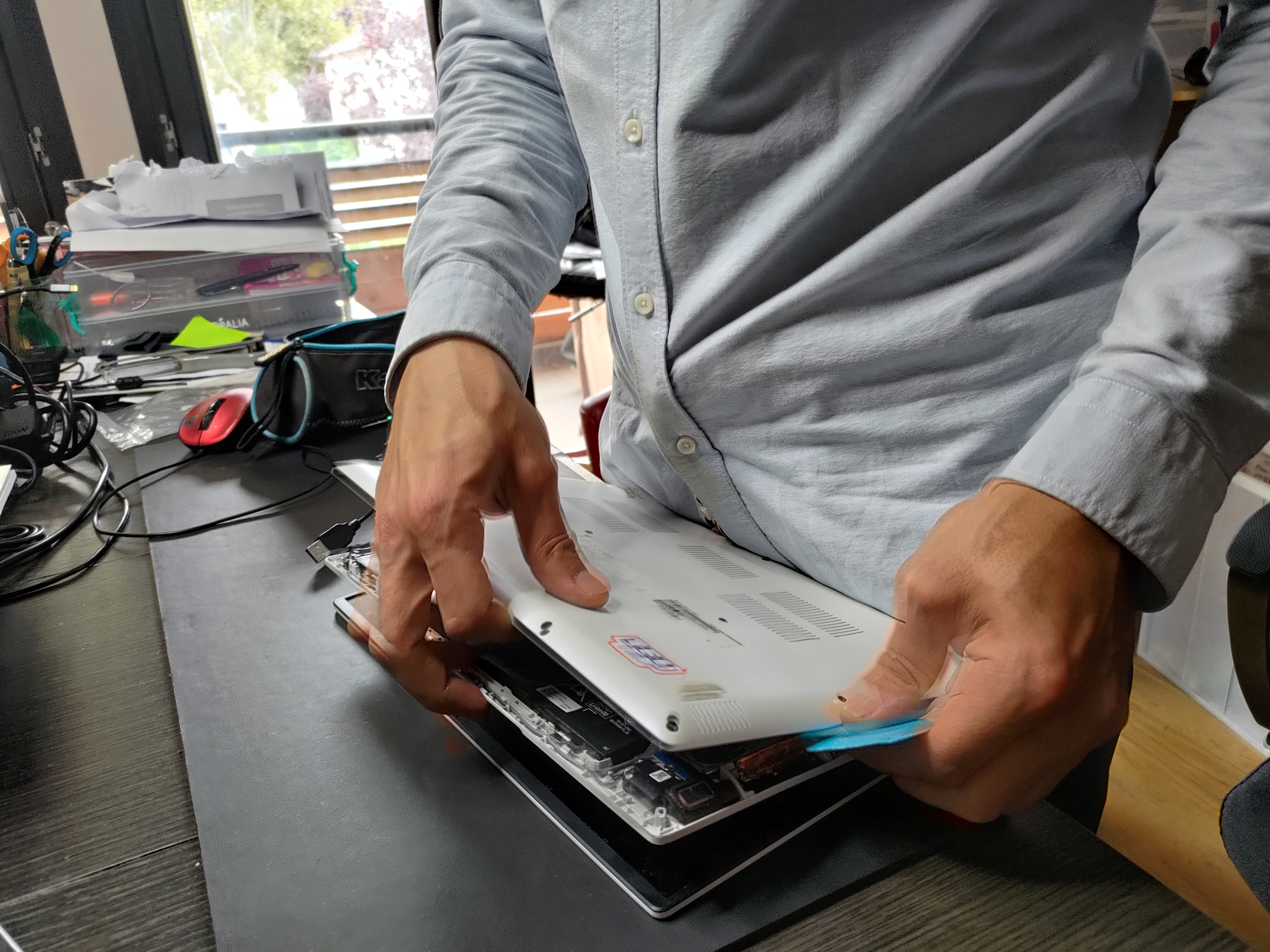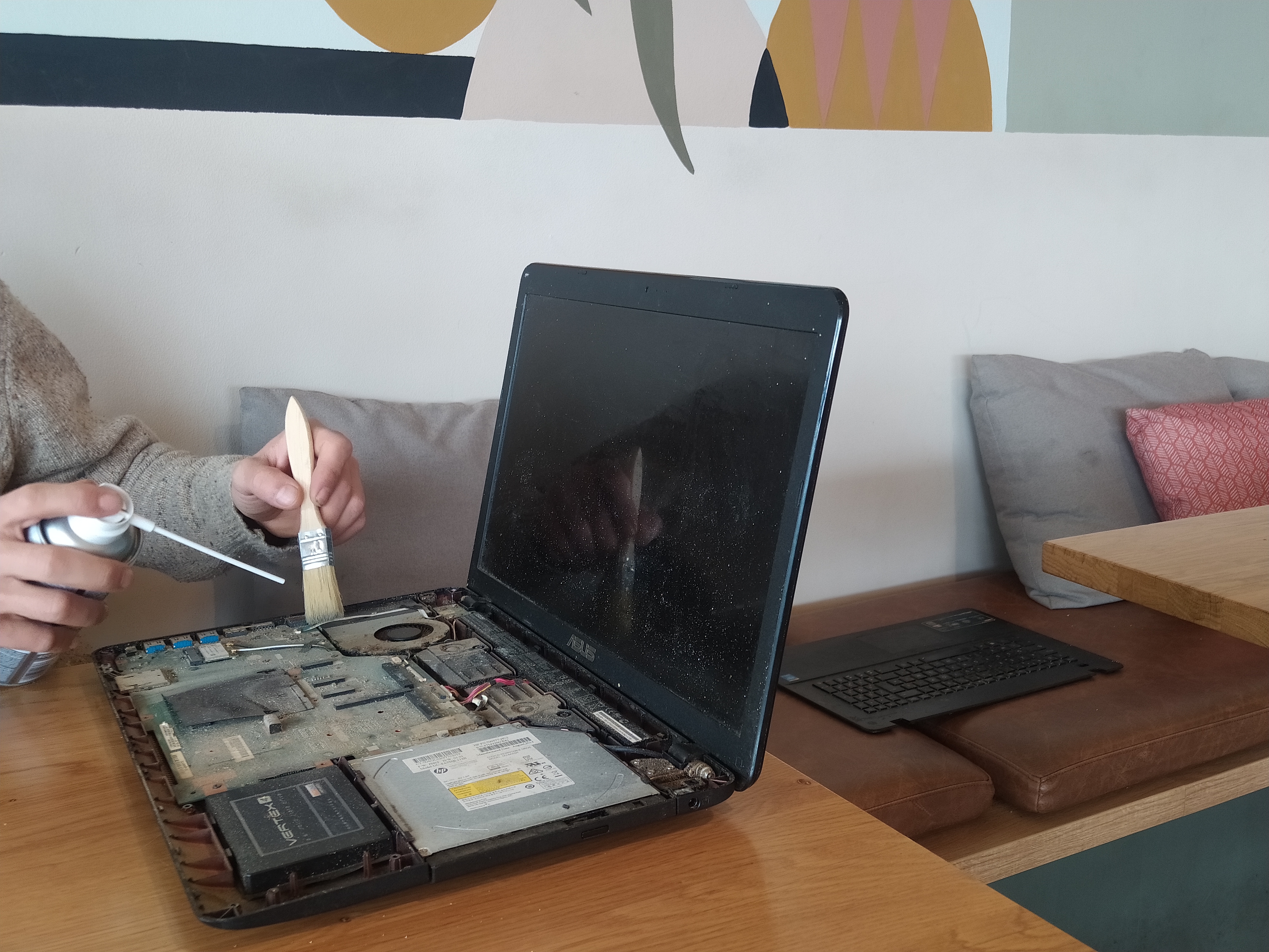 Nordine est patient (car je ramenais un engin bien lent !!). Bon moment d'échange et formation ludique sur les bases d'entretien d'un PC. Ça sert à rien de racheter du neuf, il faut en prendre en soin !