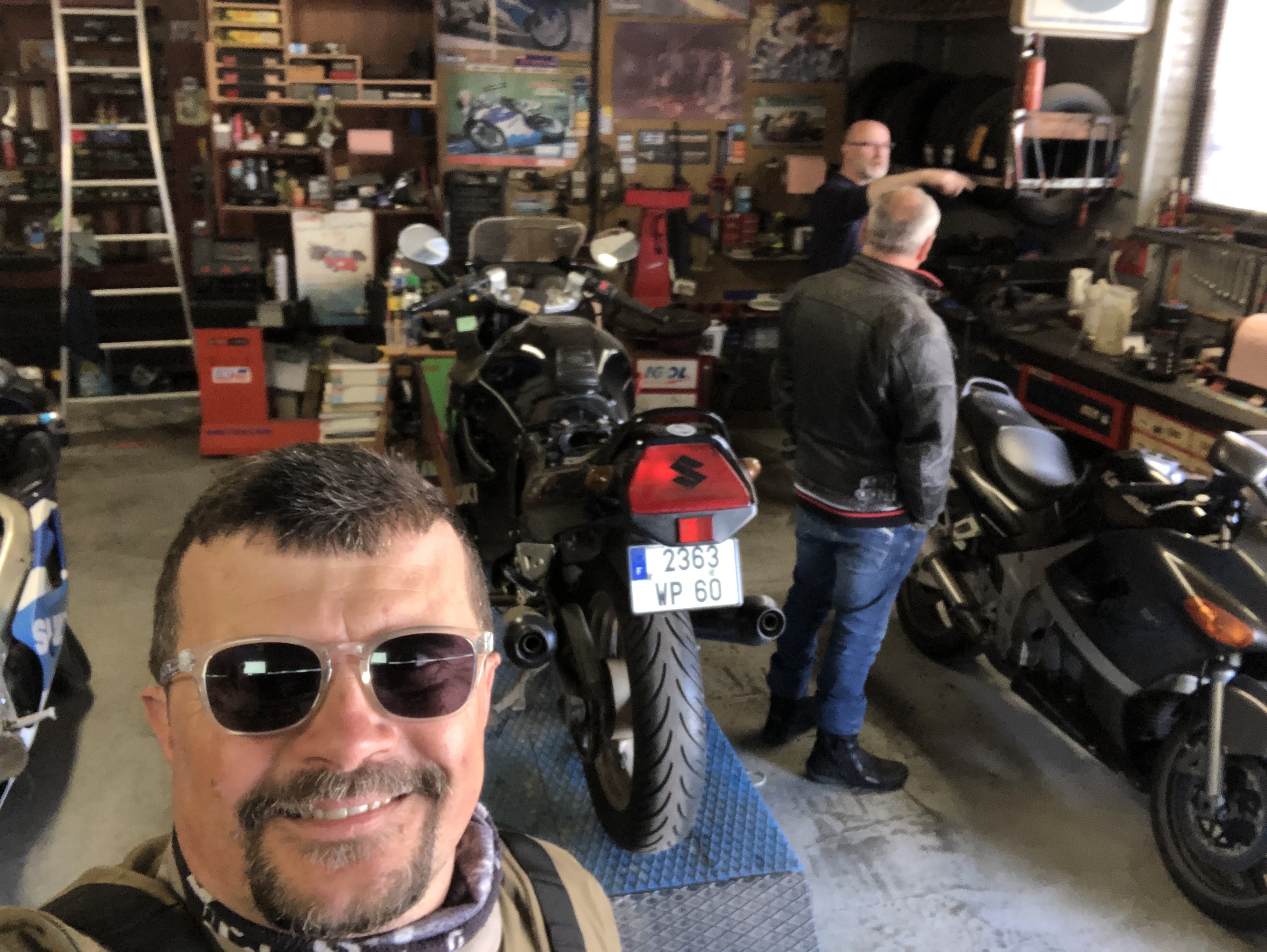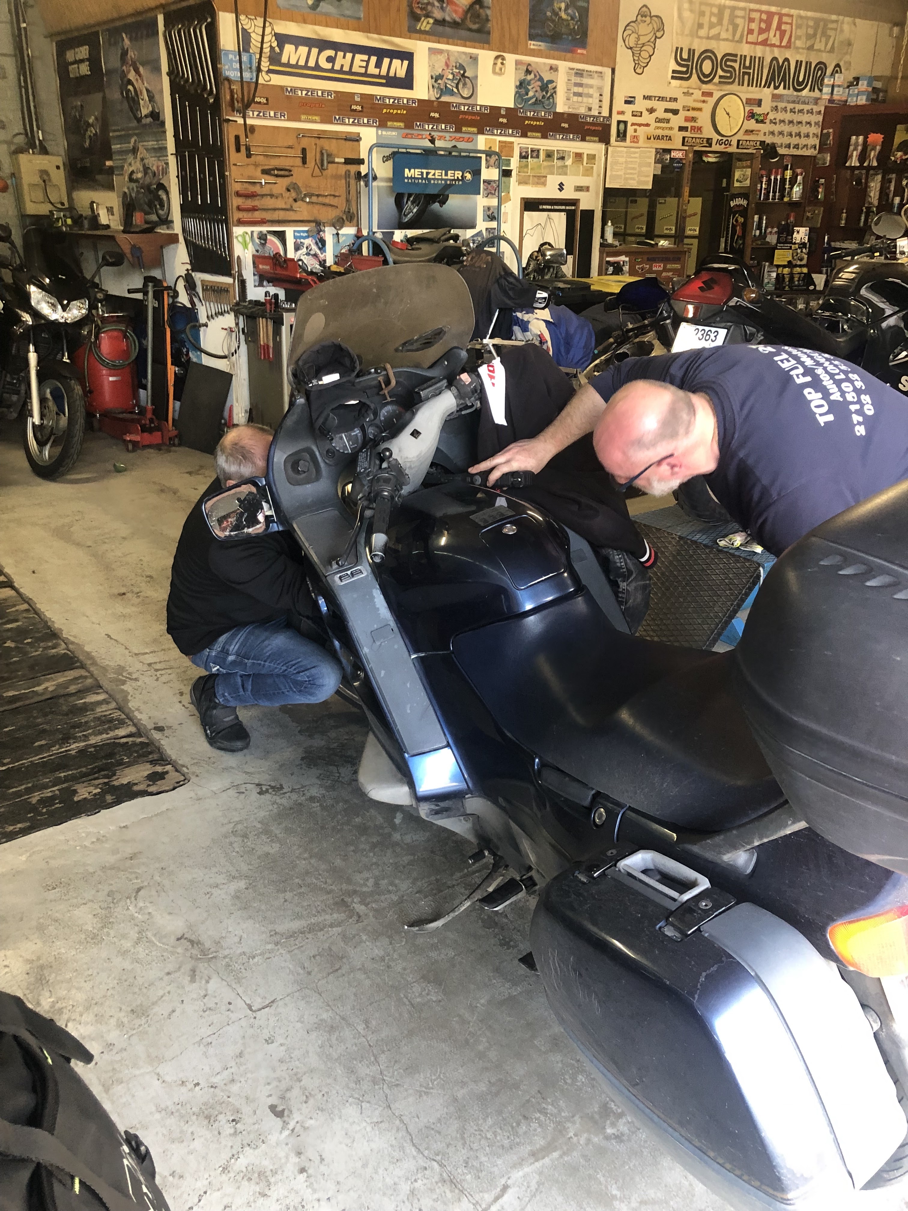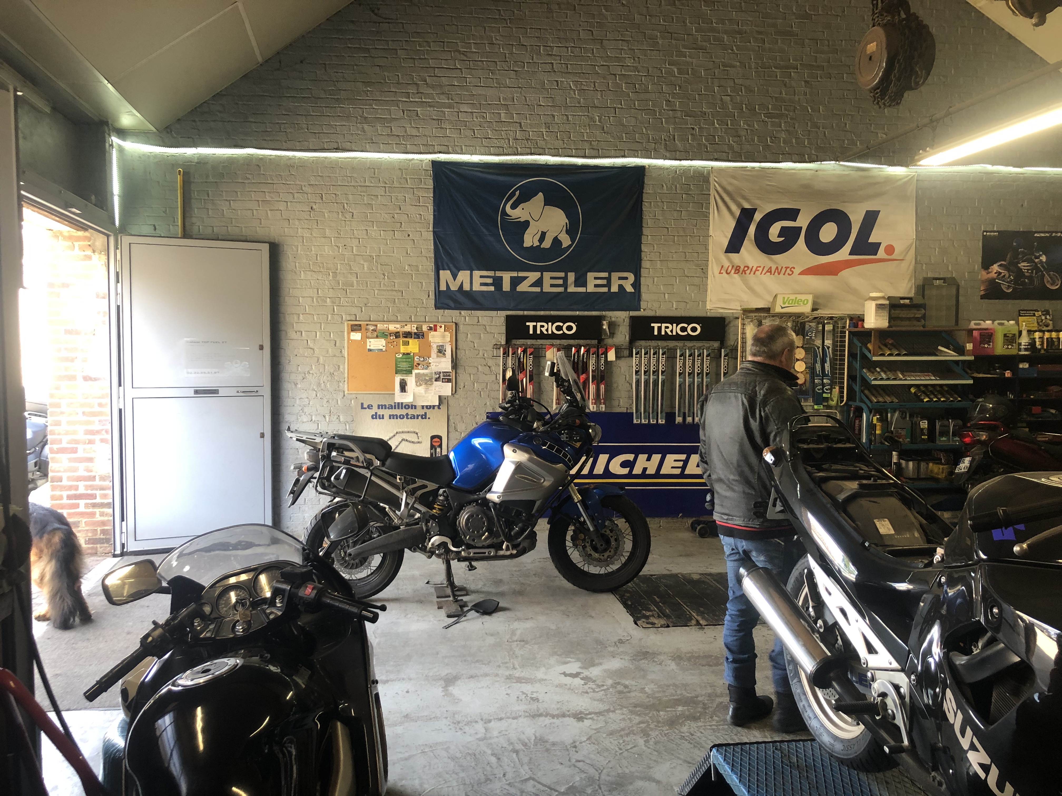 Un garage à l'ancienne avec un mecano moto comme ont en fait plus... Force 💪 à Gérard